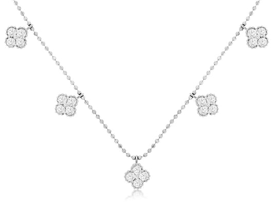 Four sparkling round diamonds form a clover in each station. This classy, stylish diamond necklace...