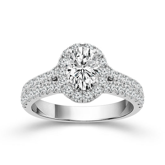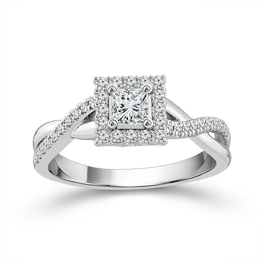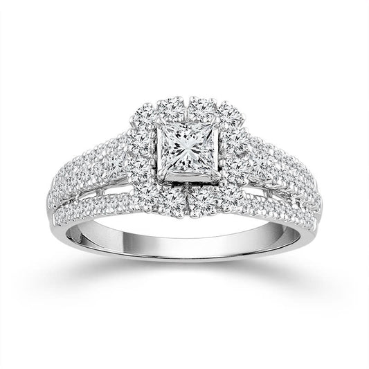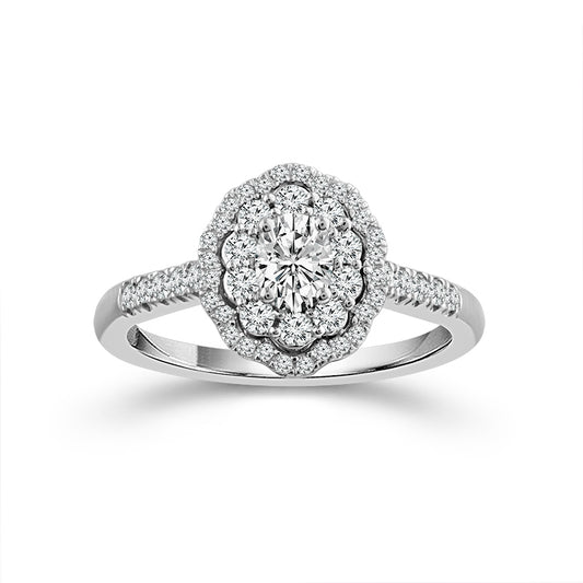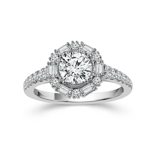 Celebrate your love with this exquisite 14K White Gold Round Diamond with Baguette Halo Engagement...