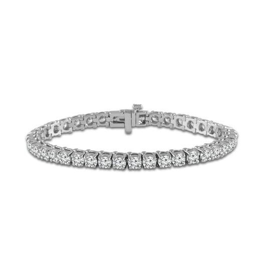 This dazzling diamond tennis bracelet is crafted in 14kt white gold. Round brilliant diamonds total...