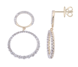 Elevate your look with modern elegance. These 14K gold double-circle drop earrings showcase 1.07ctw of...