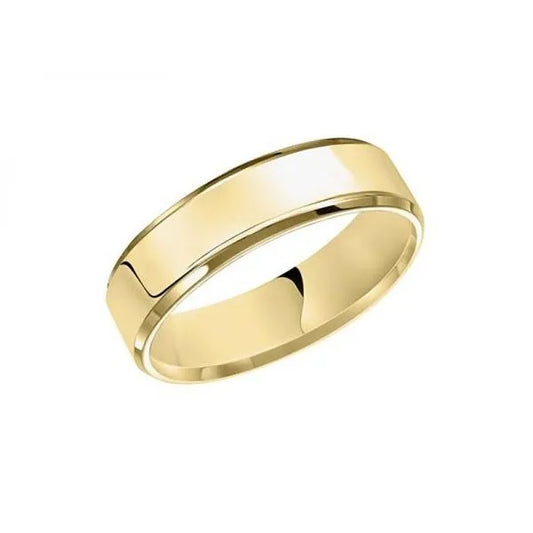 This Comfort Fit, wedding band is crisp and contemporary featuring a high polished beveled edge...