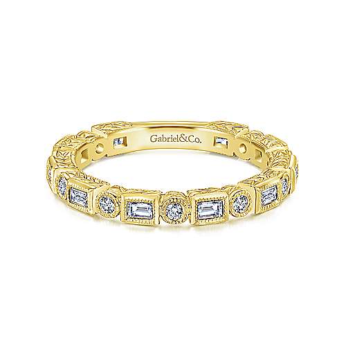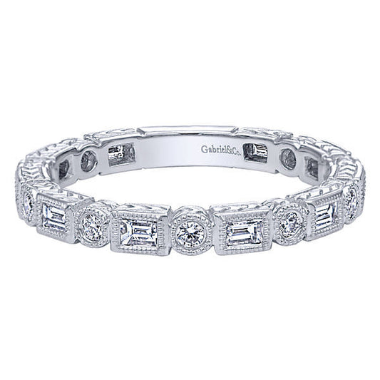 An intricately detailed ring to up your stackable style game. Alternating round and baguette diamonds...