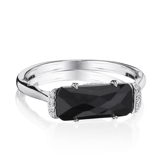 Sterling Silver Onyx and Pave Diamond Ring 0.03cts in diamonds emerald onyx set east to...