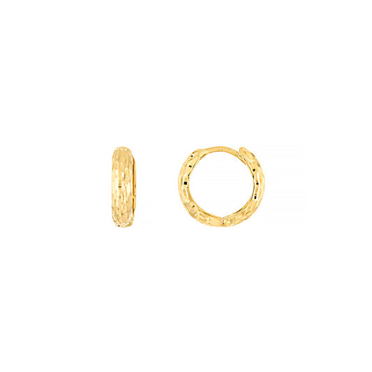 Mini hoops are an essential for any wardrobe. These diamond-cut 14K yellow gold hoop earrings...