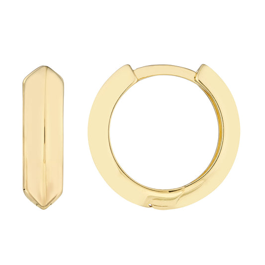 High shine Knife Edge polished hoops are everyday staples. 3.50x13.50mm in size made in 14K...