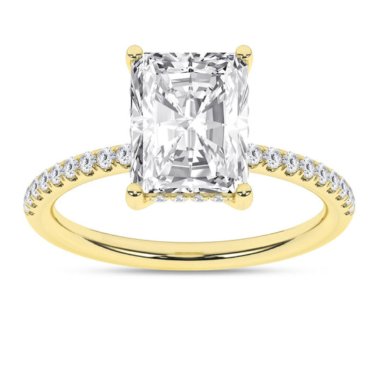 Introducing our Lab Grown Diamond Hidden Halo Engagement Ring, expertly crafted in 14KT yellow gold...