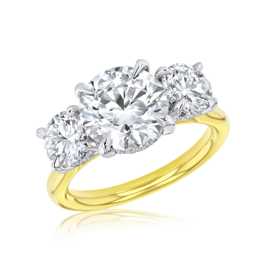 The 18K Two-Tone Lab-Grown 4.60CTW Round Three-Stone Ring is a captivating blend of timeless elegance...