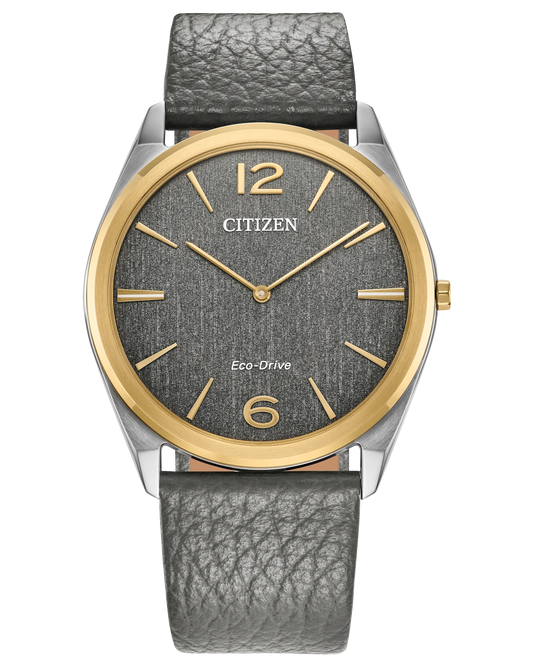 Keep it simple with the classic lines and rich leather strap of these men's CITIZEN®...