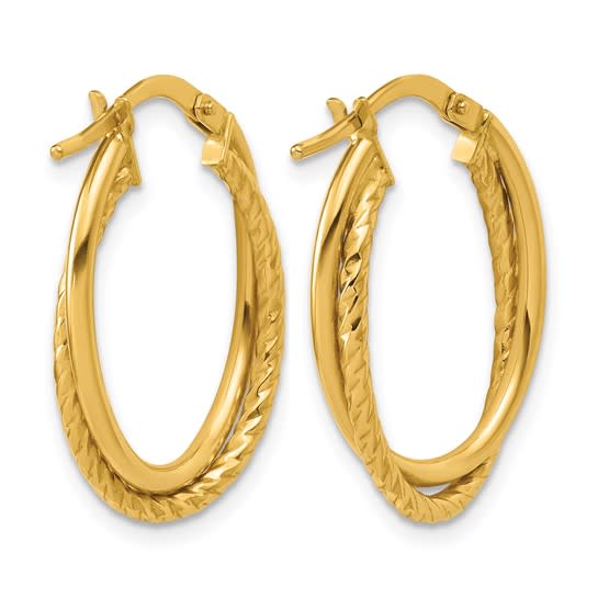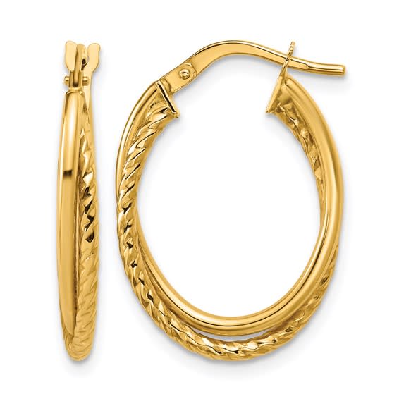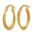 10K Gold Polished & Textured Oval Hoop Earrings
