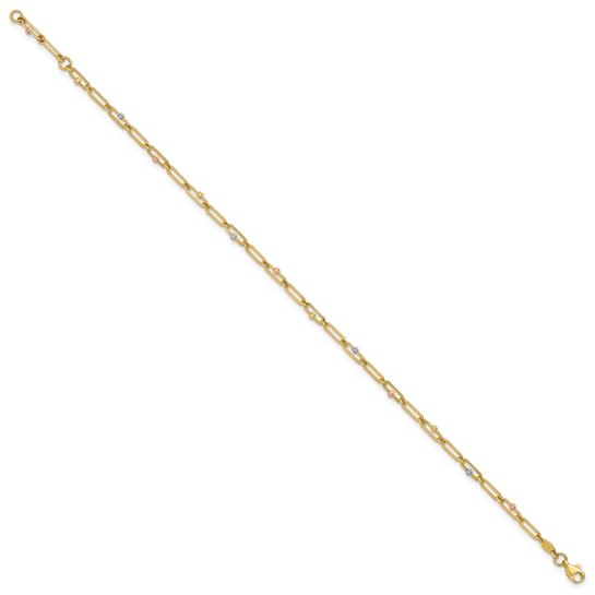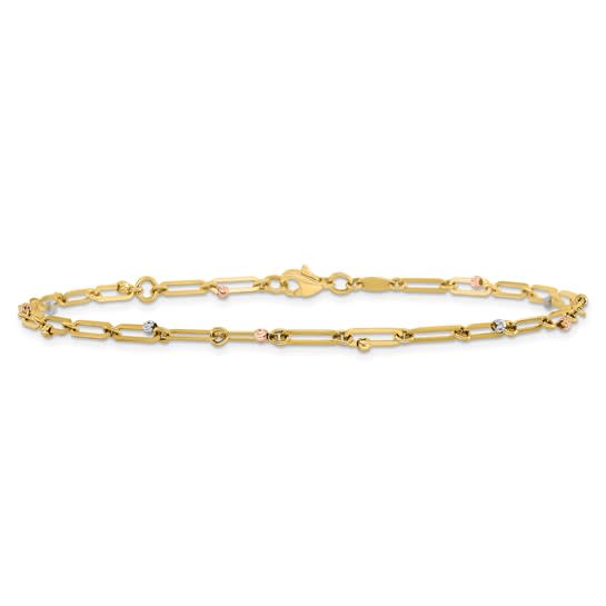 10K Tri-color Polished and Diamond-cut 10in Anklet