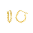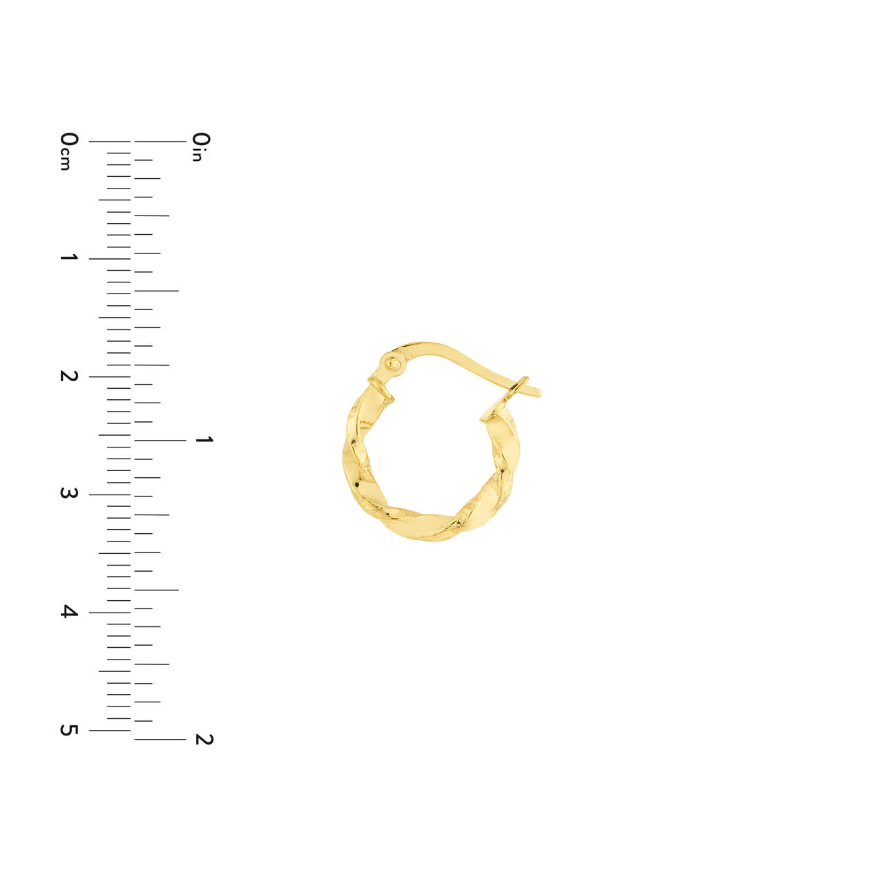 Small twisted hoops are an essential to any wardrobe. Heighten any look with these 10K yellow gold hoop earrings with a hinge closure.