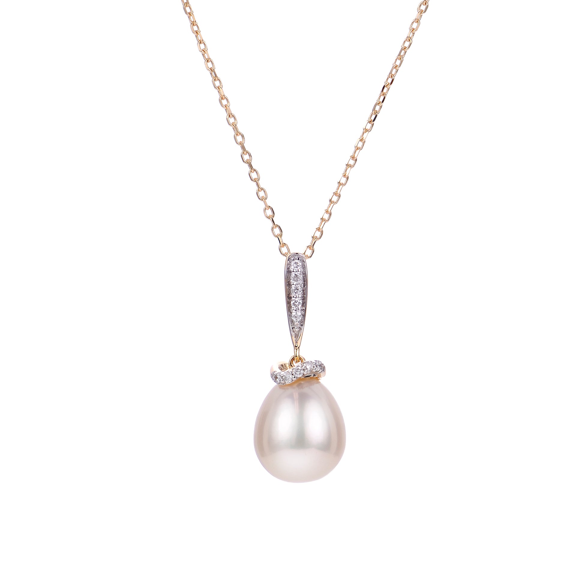 14K 18" Freshwater Cultured Pearl and Diamond Pendant Necklace