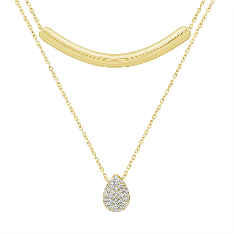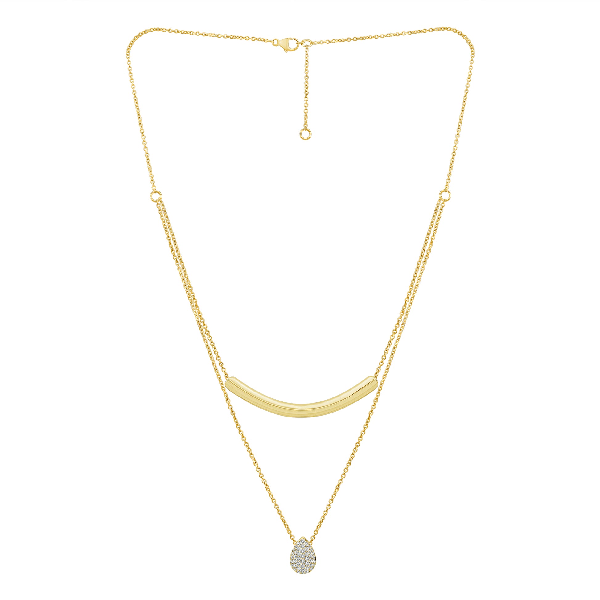 14K 3/8ctw Pavé Diamond Teardrop & Curved Bar Necklace