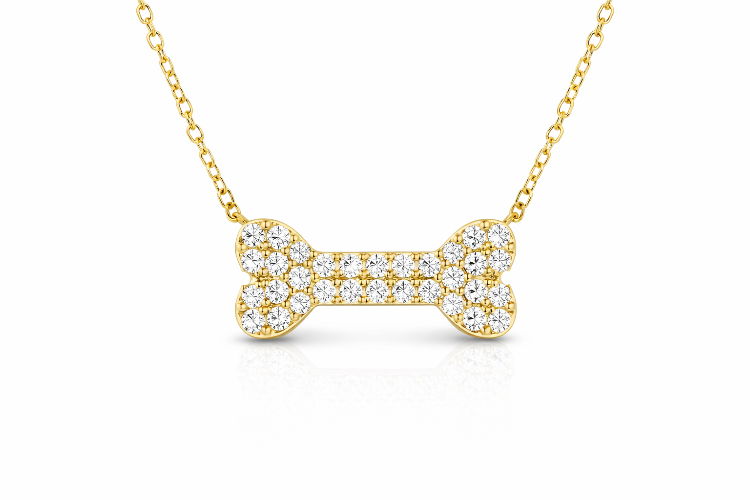 A sparkling tribute to the ones who love us most unconditionally. This diamond dog bone pendant is crafted in your choice of 14K yellow or white gold and set with 32 round brilliant diamonds, thoughtfully arranged to create a playful silhouette with elevated elegance.