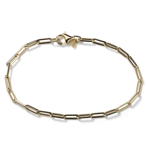 Our elegant 14K Gold Paperclip Bracelet, a sophisticated and versatile piece that adds a touch of modern flair to any ensemble. Crafted from high-quality 14K gold, this bracelet features a series of interlocking paperclip-inspired links, meticulously crafted to create a seamless and stylish design. Each link is polished to perfection, showcasing the brilliance and shine of the gold. The minimalist yet chic design of the paperclip bracelet makes it a timeless addition to any jewelry collection. Whether worn alone as a statement piece or layered with other bracelets for a more dynamic look, it effortlessly complements any outfit, from casual to formal.