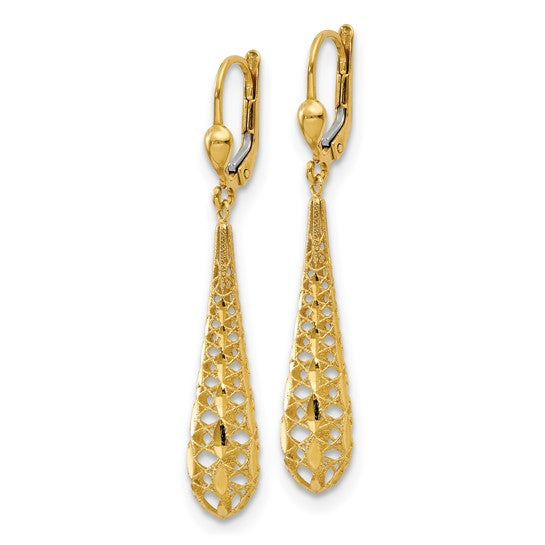 These 14K Polished Fancy Leverback Earrings are a sophisticated and versatile addition to any jewelry collection. Crafted from high-quality 14K gold, these earrings feature a polished finish that gives them a sleek and elegant look. The fancy leverback design adds a touch of uniqueness and style to these classic earrings. Perfect for both casual and formal occasions, these earrings are comfortable to wear and secure with their leverback closure. Elevate your look with these timeless and chic earrings that are sure to become a staple in your accessory collection.