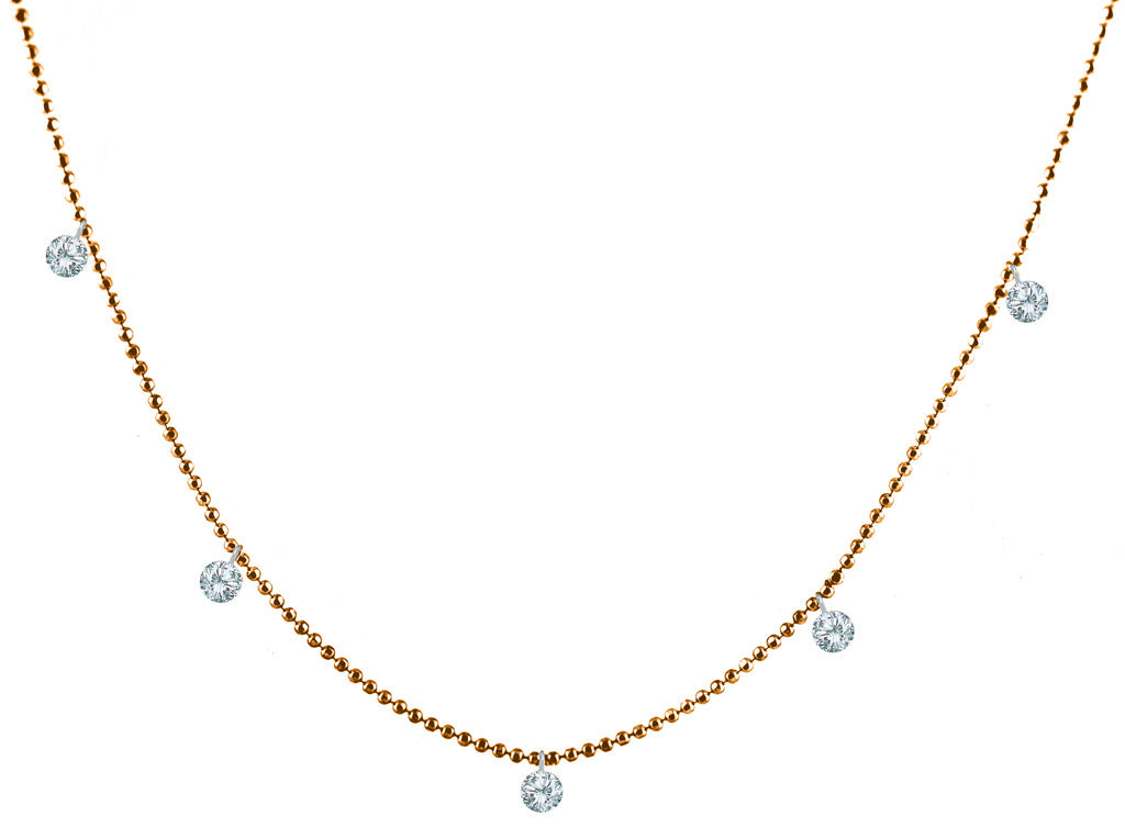 This 14K Rose Gold Floating Diamonds Necklace is a delicate and timeless piece, perfect for everyday elegance. Featuring brilliant diamonds that appear to float along a 16-inch chain, this necklace offers subtle sparkle with effortless sophistication. Crafted in warm 14K rose gold, it’s a versatile accessory that can be worn alone or layered for a stylish look. A modern classic, this necklace is the perfect addition to any jewelry collection.