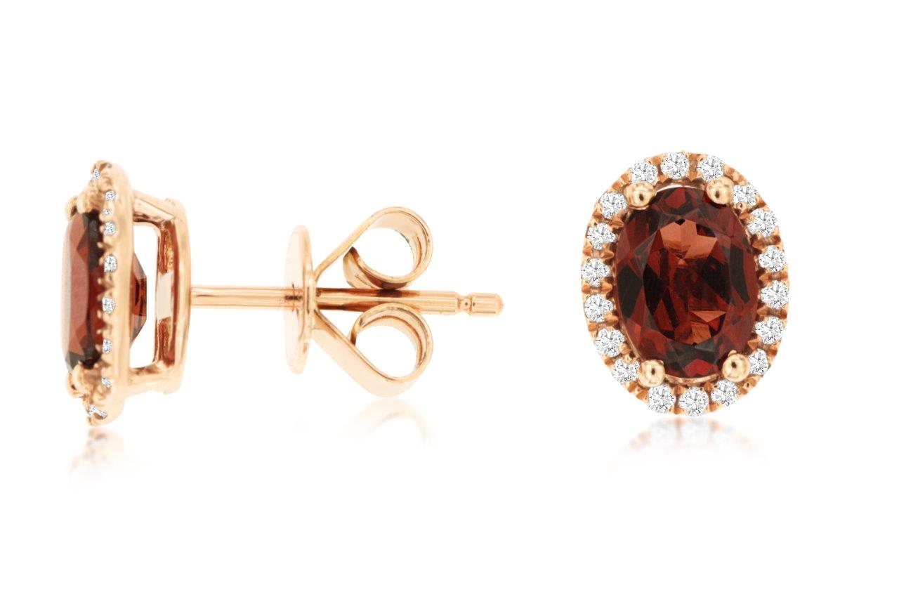 14K Rose Gold Garnet and Diamond Stud Earrings