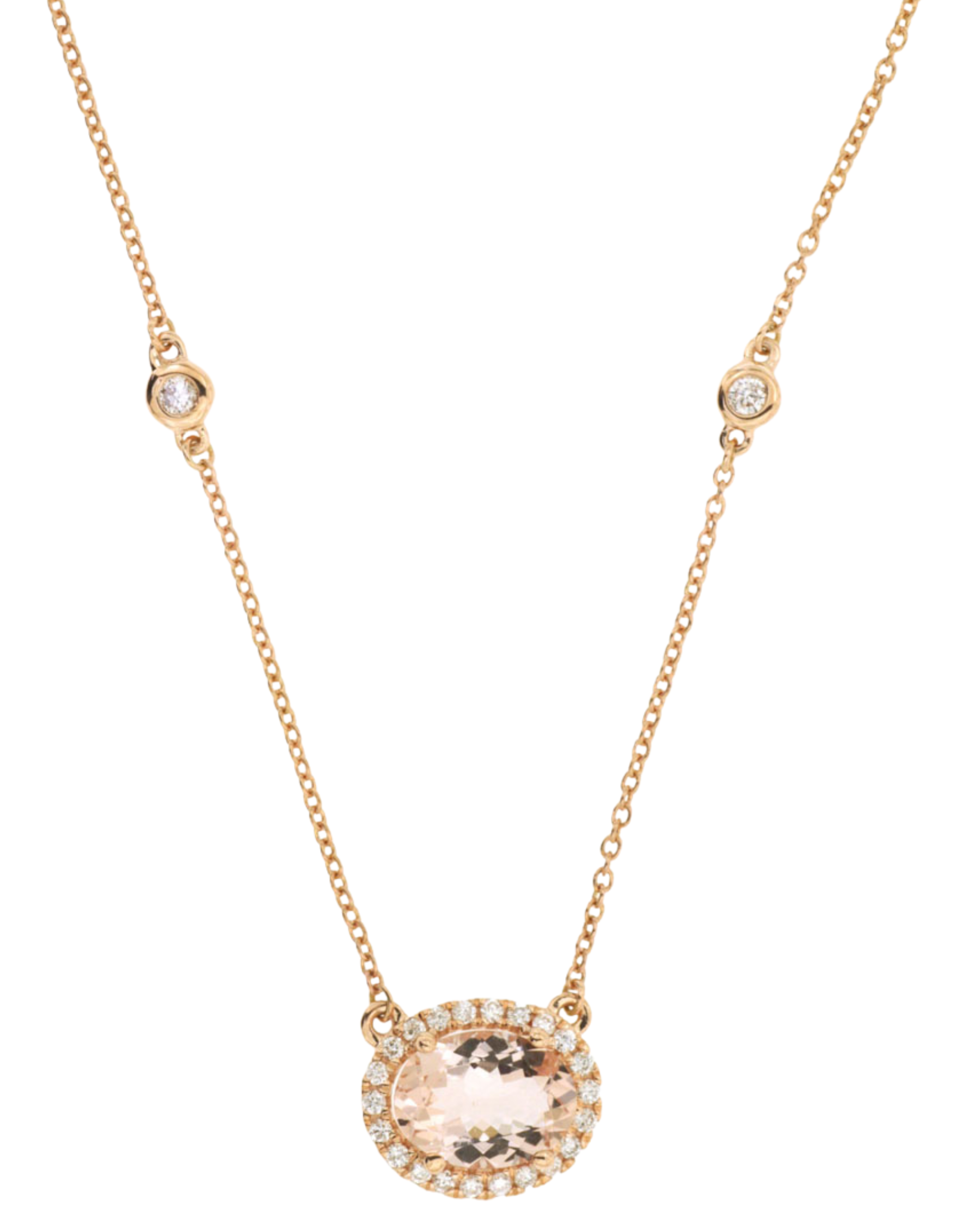 14K Rose Gold Morganite and Diamond Station Necklace