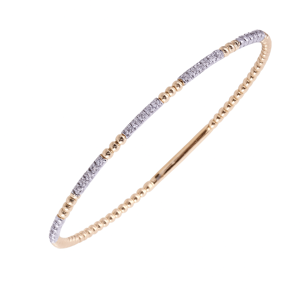 14K Two Tone .47ctw Pave Diamond Beaded Bangle