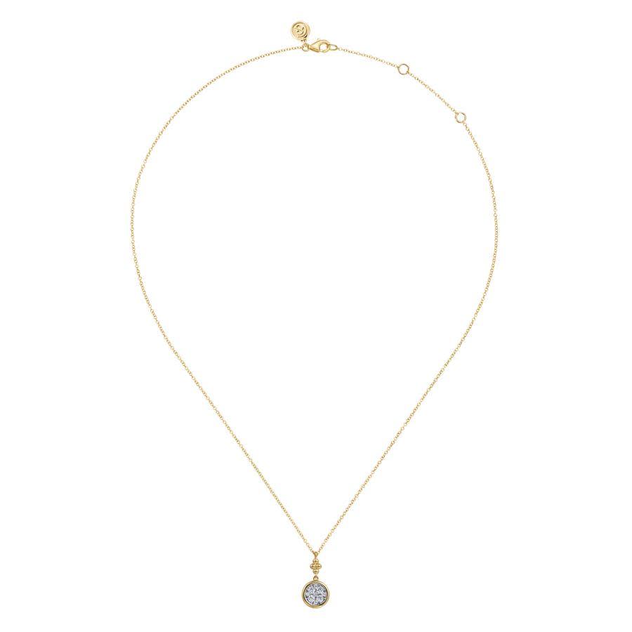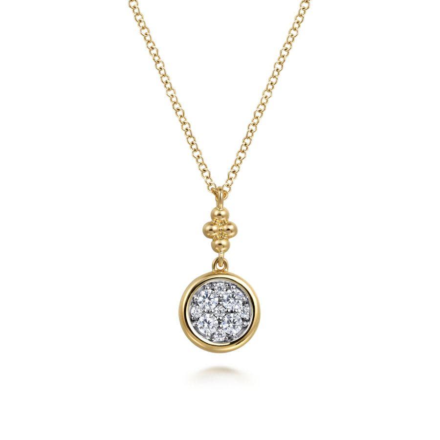 14K White and Yellow Gold Diamond Cluster Drop Necklace