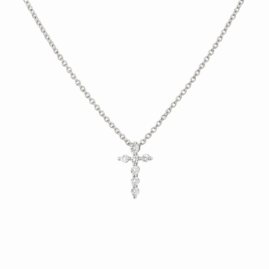 14K White Gold 0.10ctw Diamond Cross Necklace