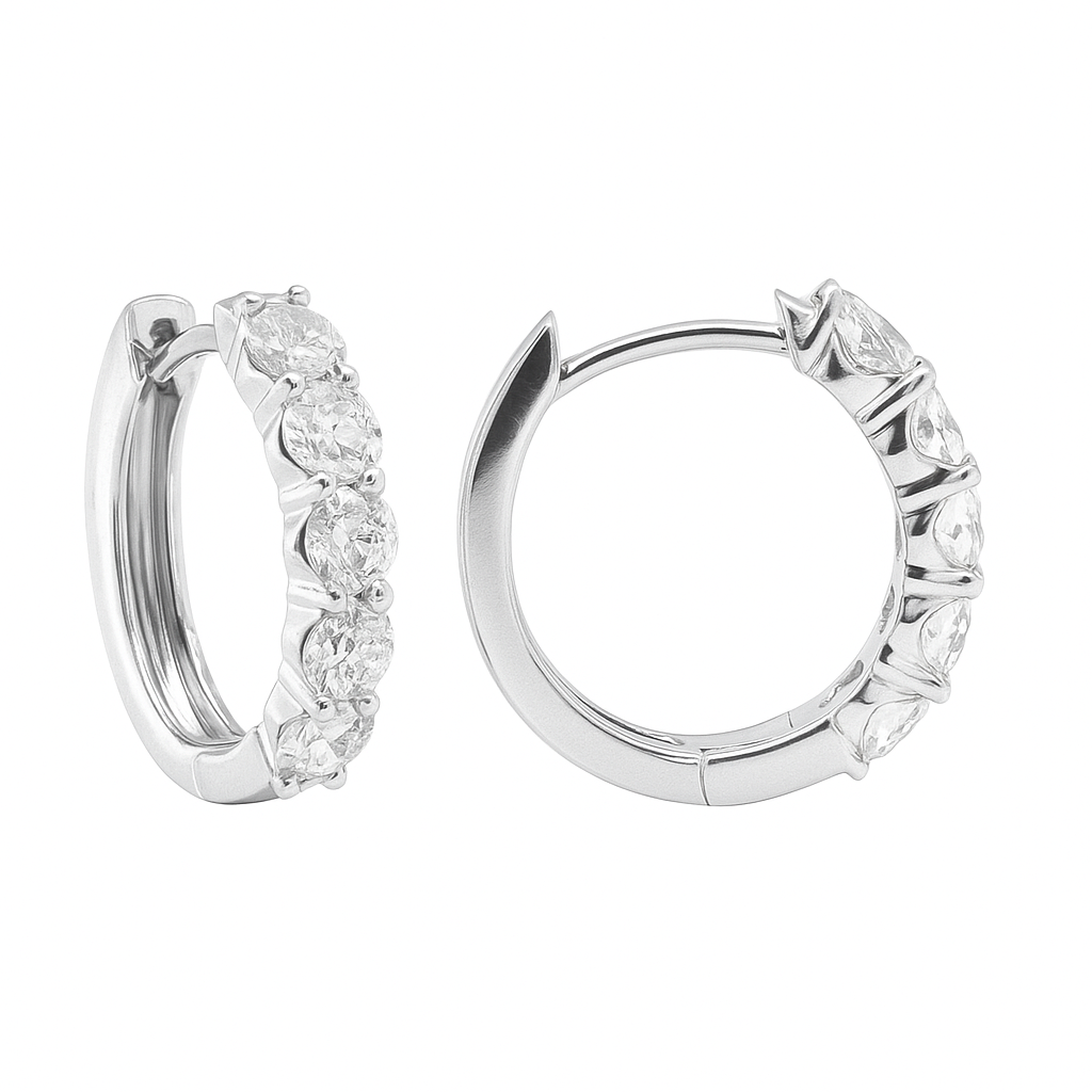 Each earring features five natural brilliant round diamonds—ten in total—bringing the perfect blend of sparkle and sophistication. With 1.25ctw, the diamonds are beautifully showcased along the front of the hoop for maximum light and radiance. A refined staple that transitions effortlessly from day to night, these hoops are ideal for elevating your everyday style or completing a polished evening look. A must-have classic for any jewelry collection.