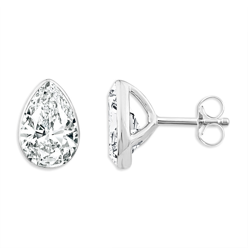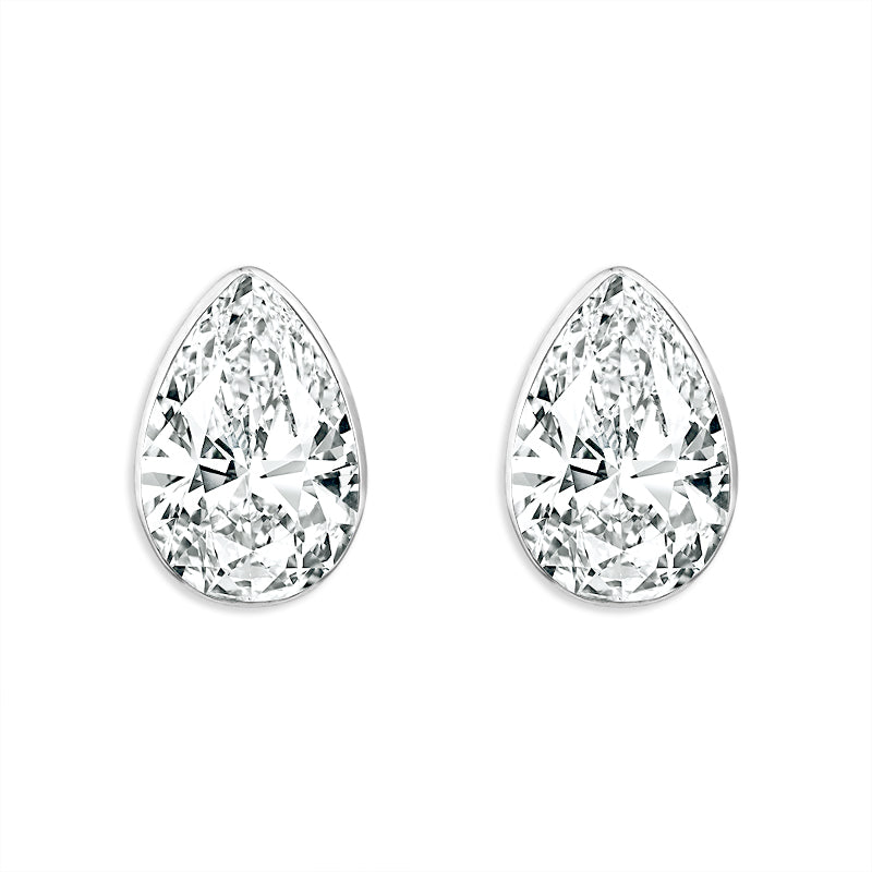 Timeless and elegant pear shaped martini diamond stud earrings totaling 1 1/2 carats. These sparklers are crafted so the earring fits comfortably in the ear while highlighting the innovative Skysetting.
