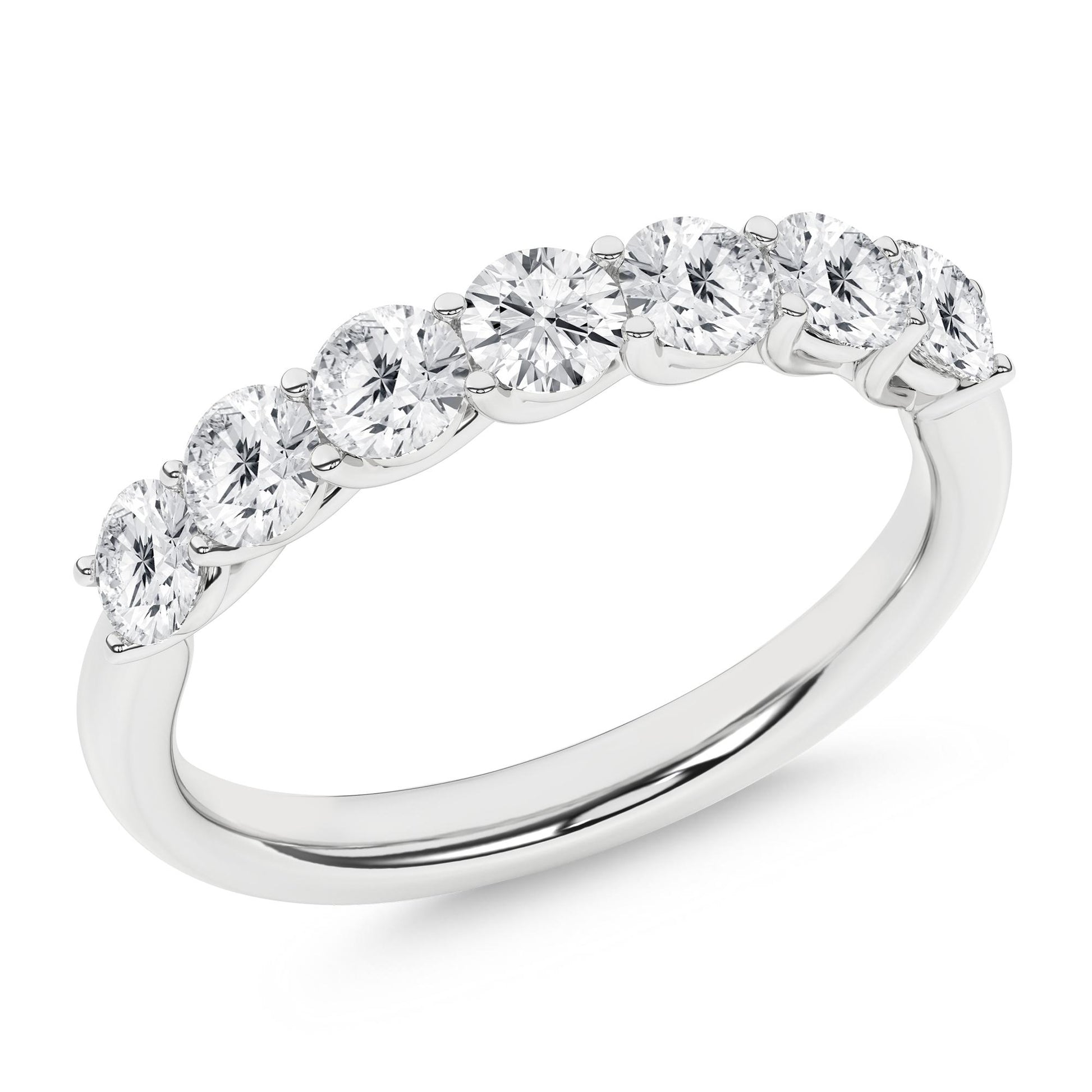 Discover timeless elegance with our 14KT White Gold Lab Grown Diamond 7 Stone Band. Adorned with 1 ctw of brilliant round lab grown diamonds, this band is a symbol of enduring love and sophisticated style. Crafted with precision, the seven diamonds are meticulously set, creating a seamless and captivating display of sparkle. The classic round cut diamonds add a touch of glamour, making this band a versatile and exquisite choice for any occasion.