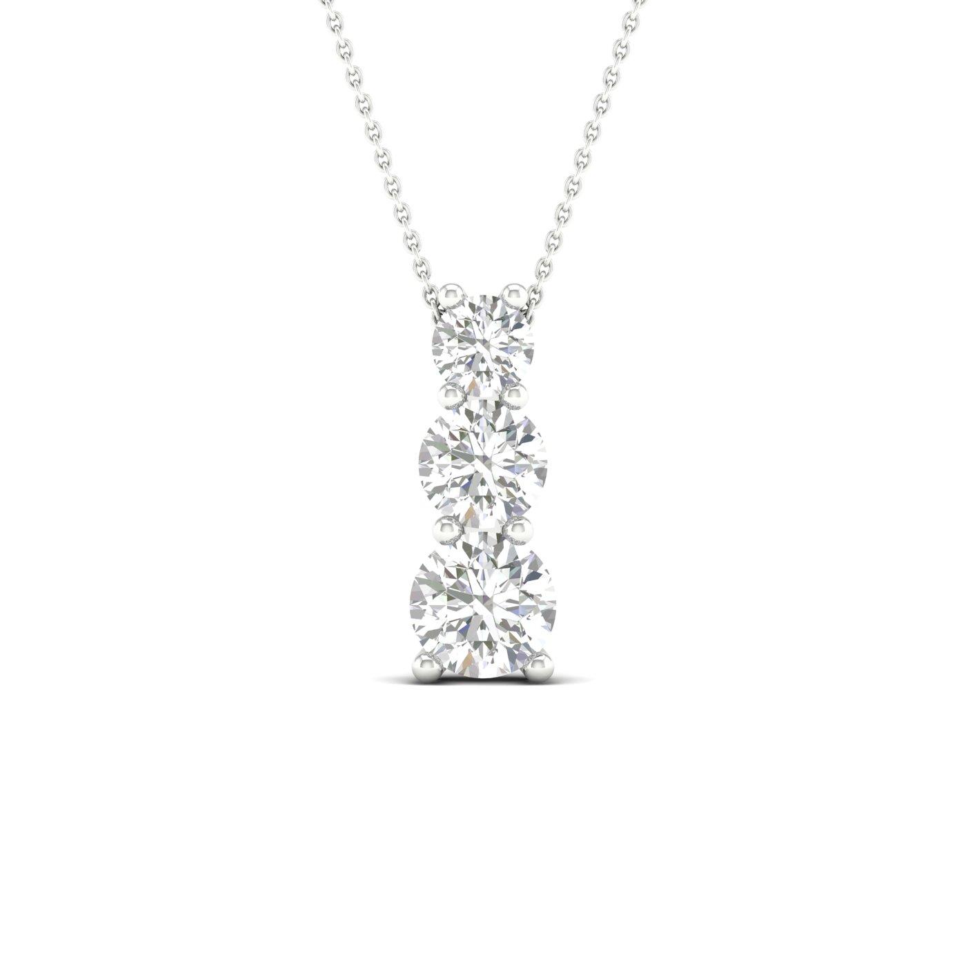 14K White Gold 1ctw Lab Grown Diamond Three Stone Necklace