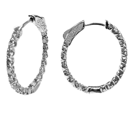 14K White Gold 2ctw Inside-Out Round Diamond Hoop Earrings