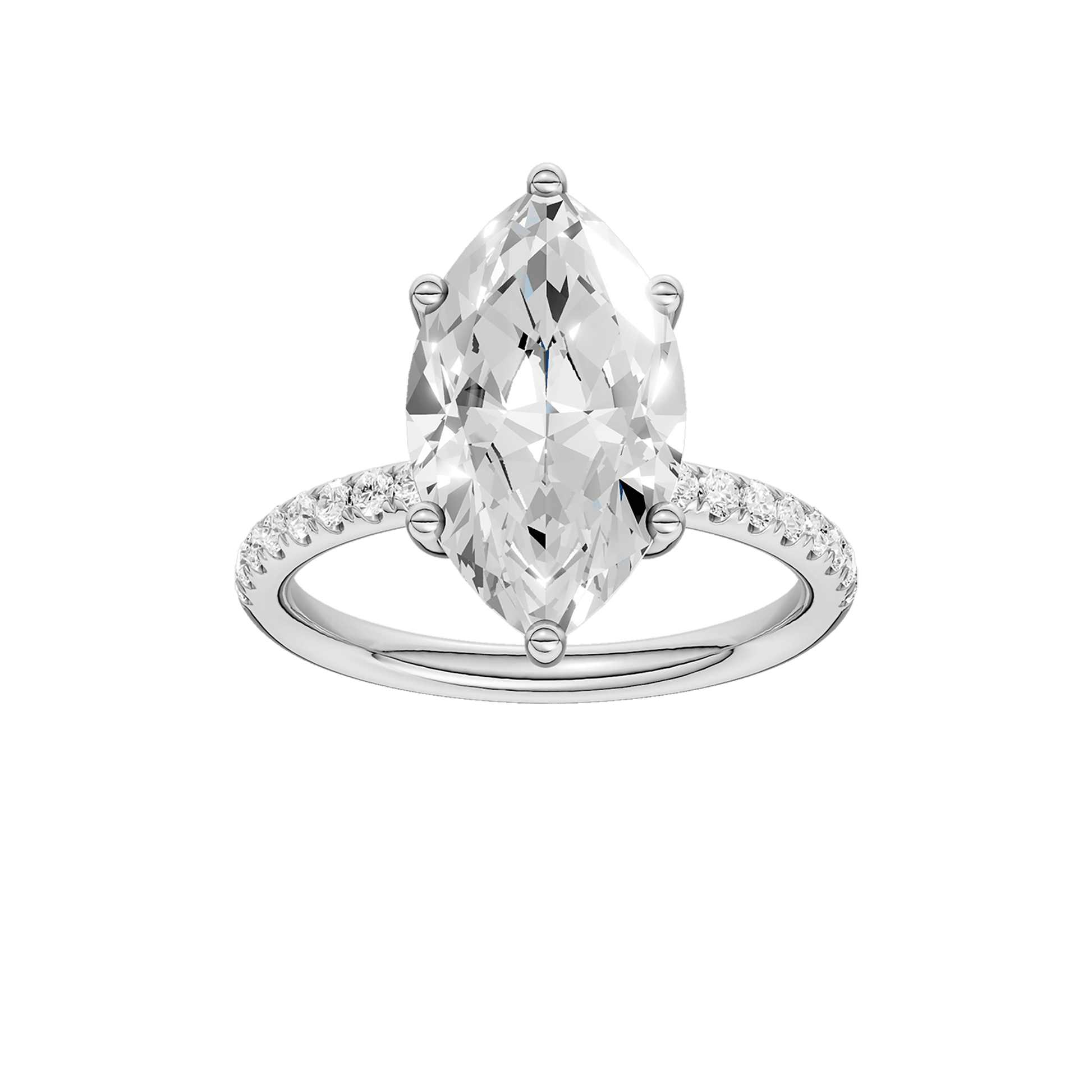 14K White Gold 3.33ctw Lab Grown Marquise Diamond with Hidden Halo Engagement Ring