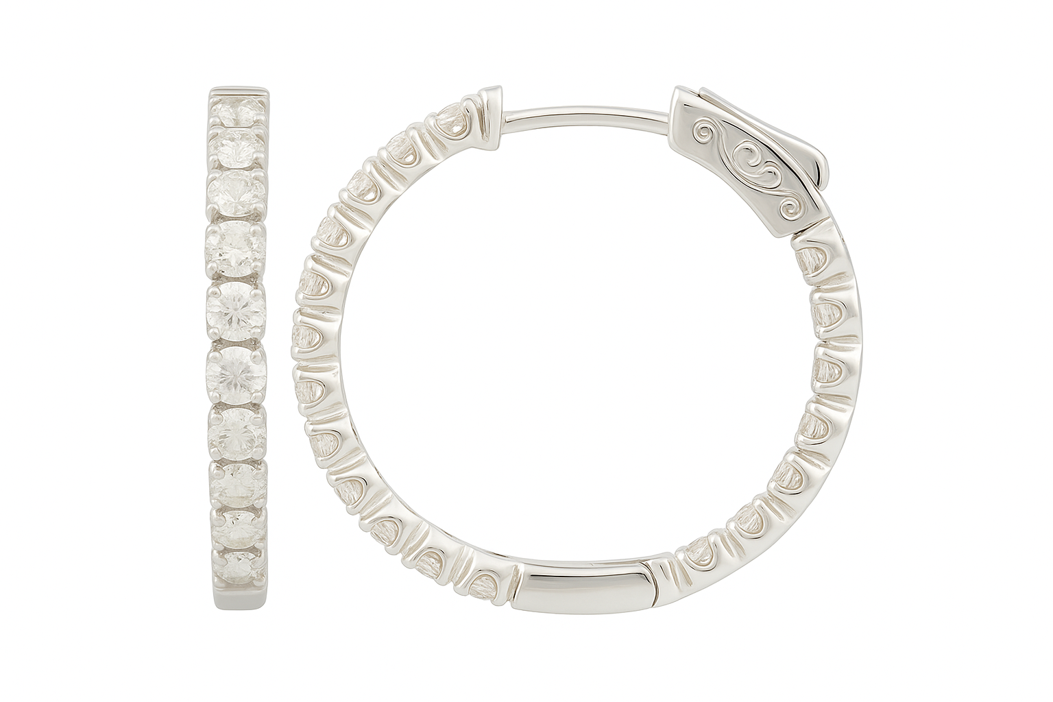 Add timeless brilliance to your jewelry collection with these breathtaking 3.00 carat total weight diamond hoop earrings. Crafted in luminous 14K white gold, each round-shaped hoop features an inside-out design—showcasing dazzling diamonds on both the outer front and inner back for maximum sparkle from every angle.