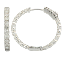 14K White Gold 3ctw Inside-Out Round Diamond Hoop Earrings