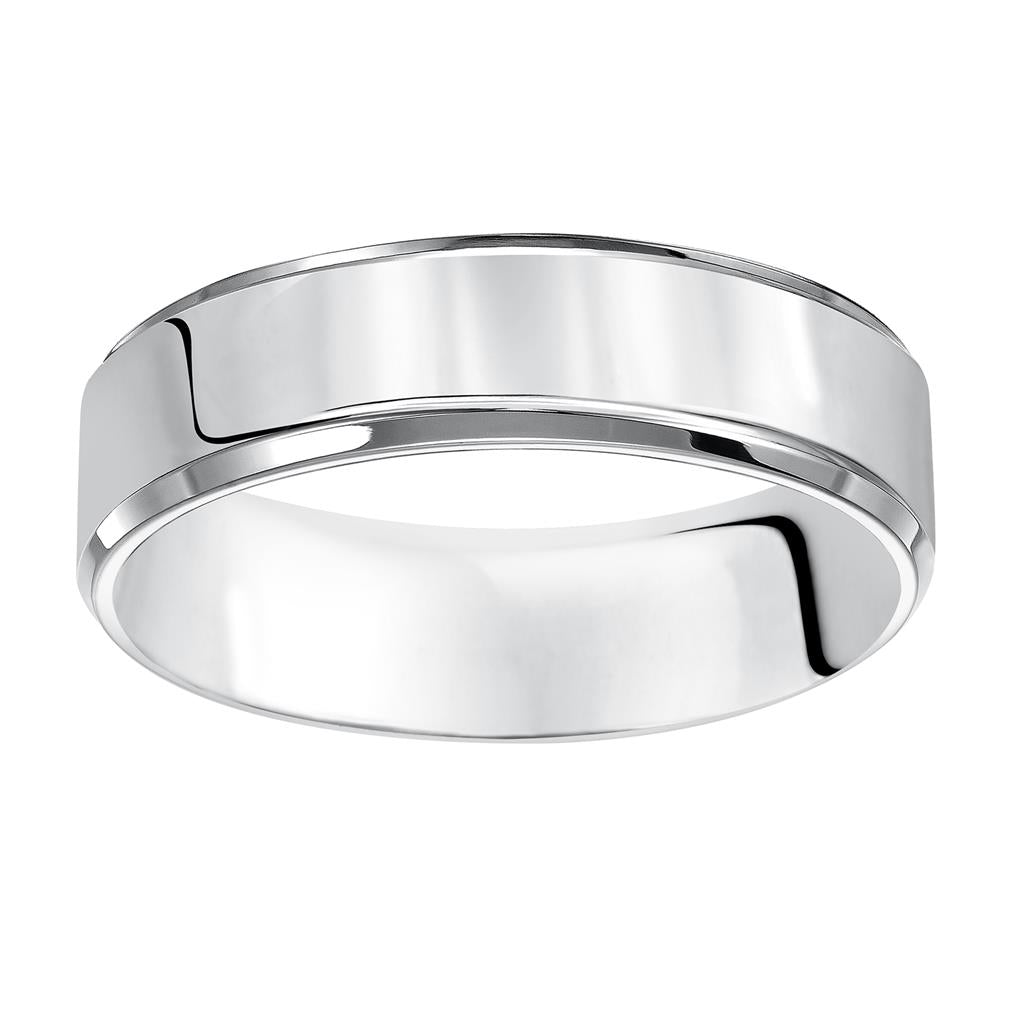 Modern and refined, this 14K white gold wedding band features a flat profile with sleek beveled edges for a sophisticated, contemporary look. The 6mm width provides a bold yet balanced presence, while the comfort-fit interior ensures all-day ease. Its high-polish finish adds a mirror-like shine that complements any style — a timeless symbol of lasting love and commitment.