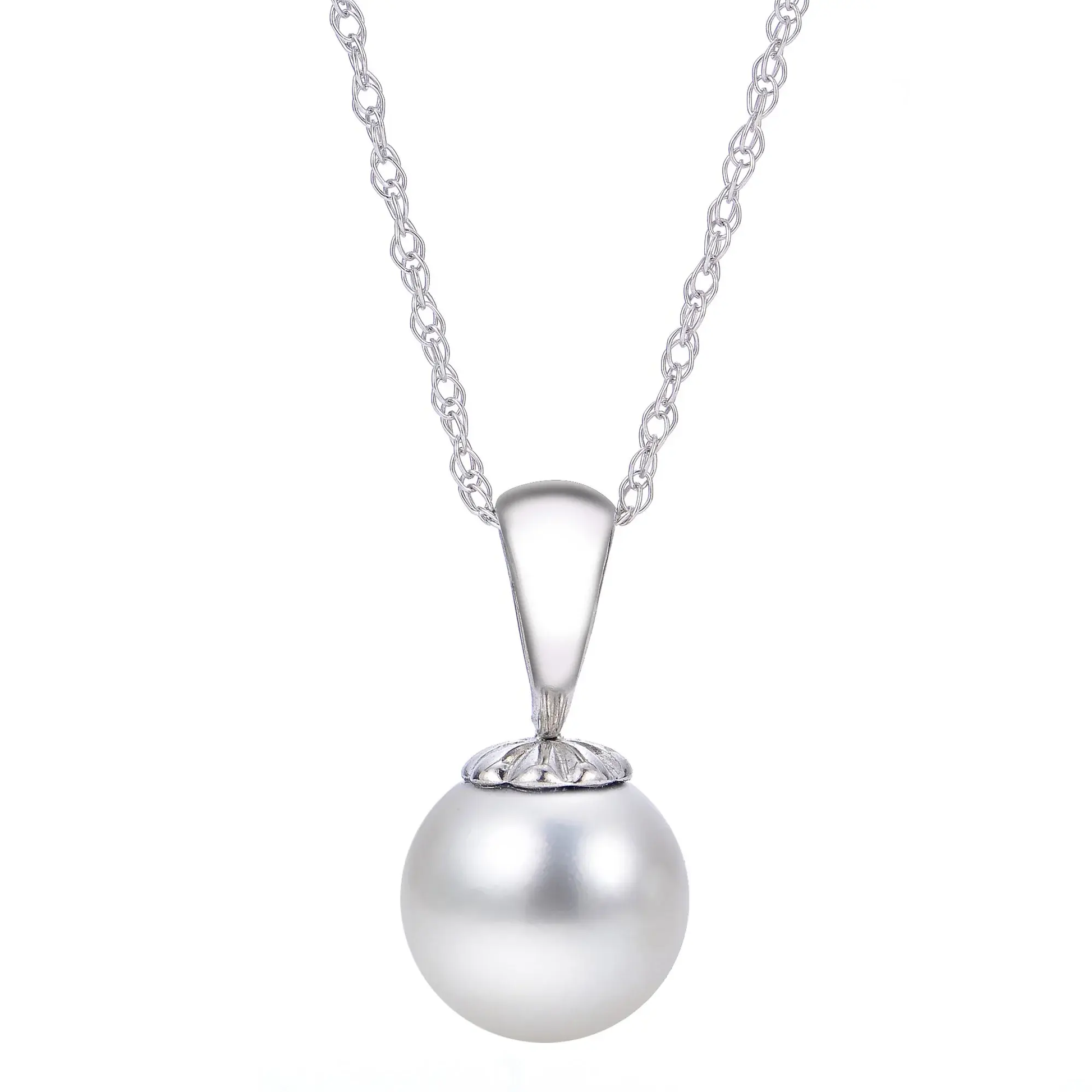 14K White Gold 7MM Cultured Pearl Pendant Necklace (18")