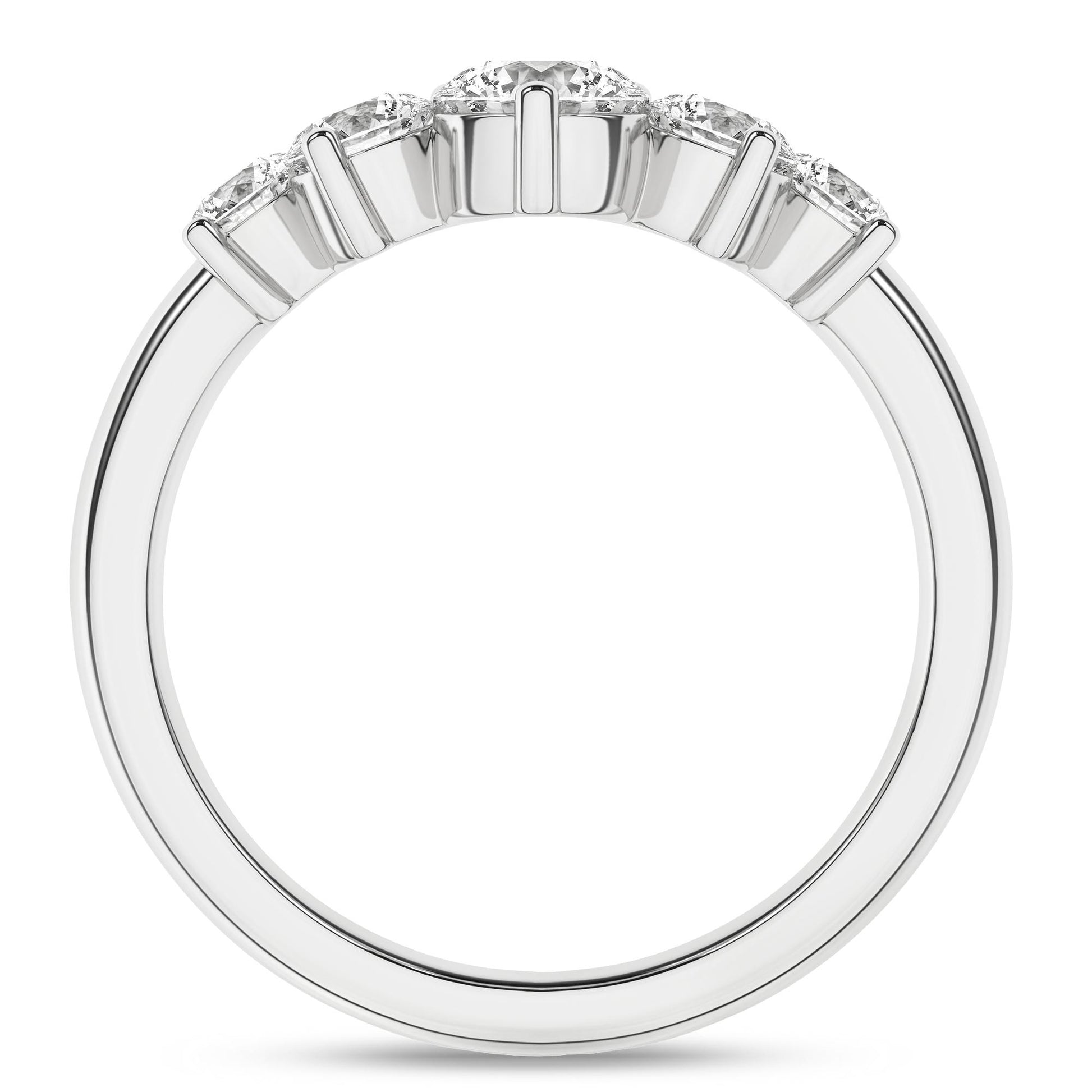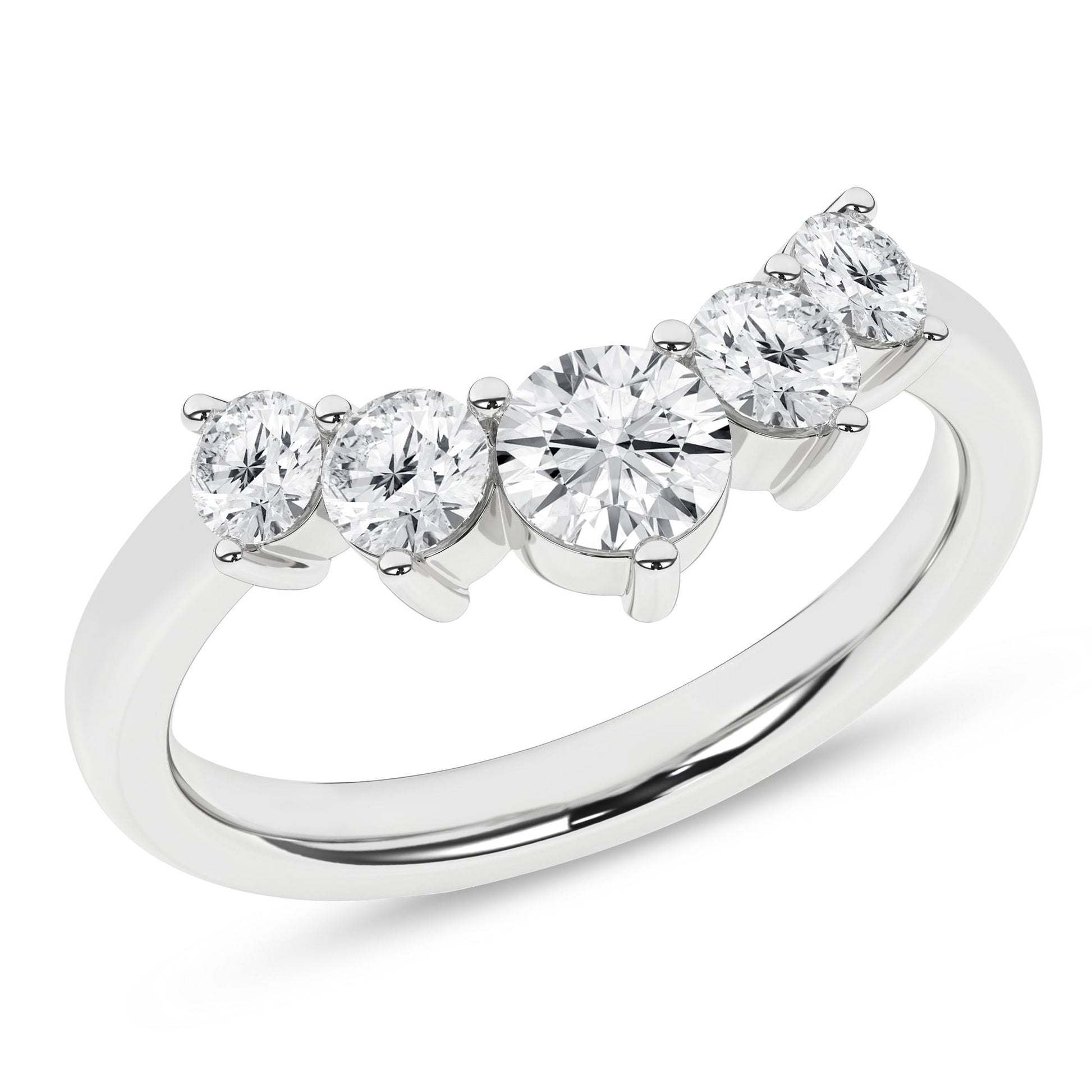 Celebrate your love story with our 14KT White Gold 5 Stone Contour Band - a radiant symbol of unity and shared moments. Adorned with .8 ctw of brilliant lab grown diamonds, this contour band features five round diamonds set gracefully in a lustrous 14KT white gold embrace. Crafted with precision, each lab grown diamond is thoughtfully arranged to contour and complement the natural curves of your finger.