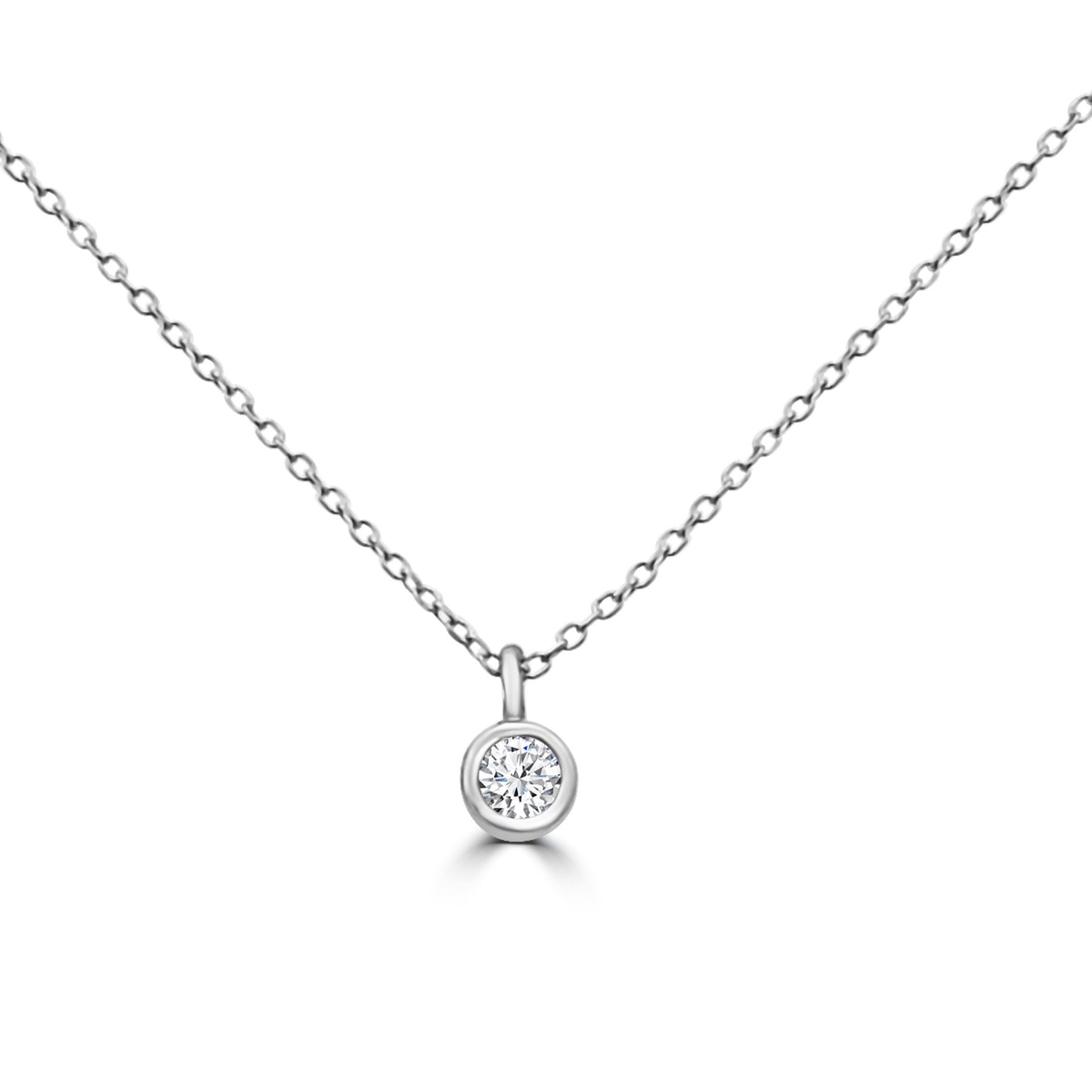 14K White Gold Bezel Set 0.10ct Round Diamond Necklace