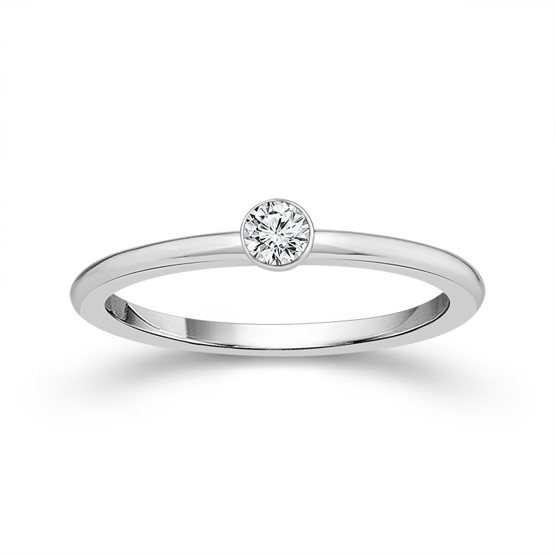 14K White Gold Bezel Set Round Diamond Stackable Ring