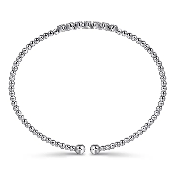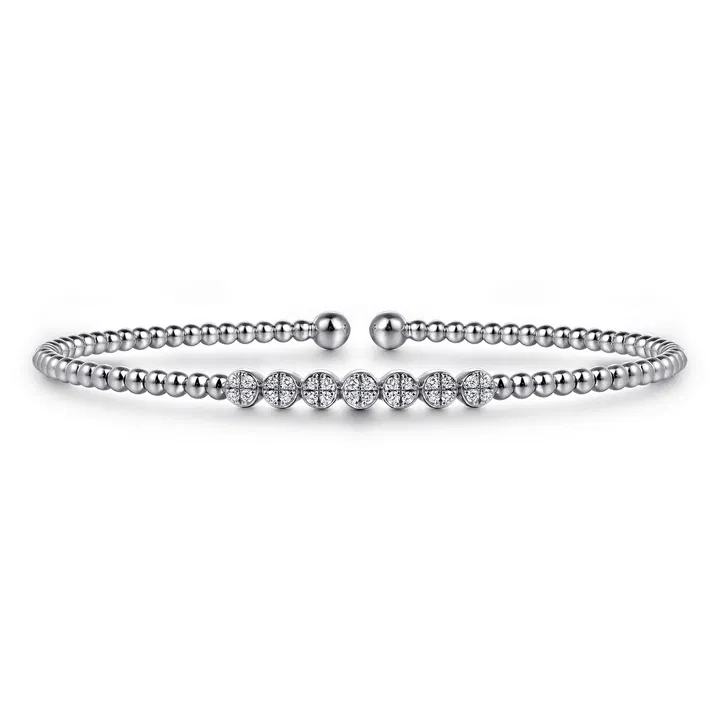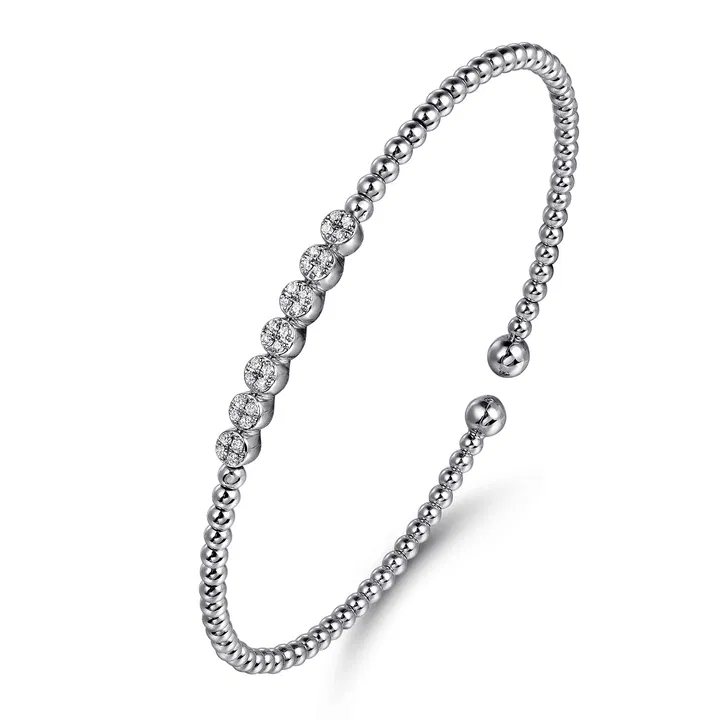 14K White Gold Bujukan Bead and Cluster Diamond Cuff Bangle