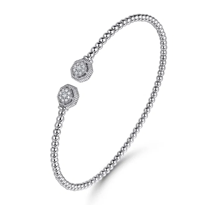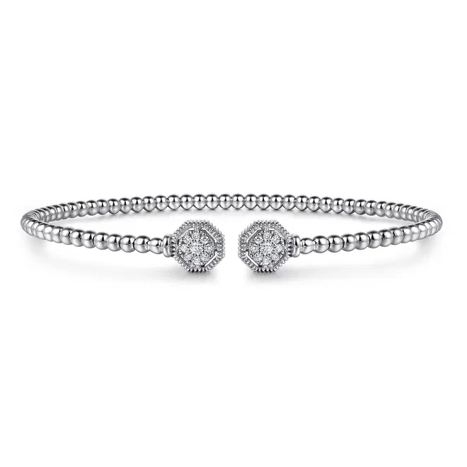 14K White Gold Bujukan Diamond Hexagon Split Bangle
