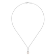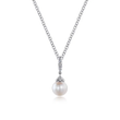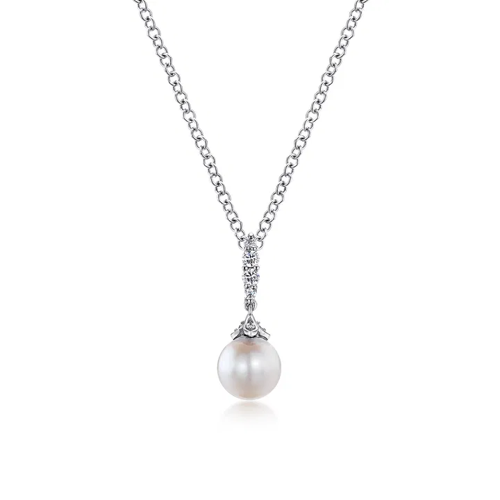 14K White Gold Cultured Pearl and Diamond Drop Pendant Necklace