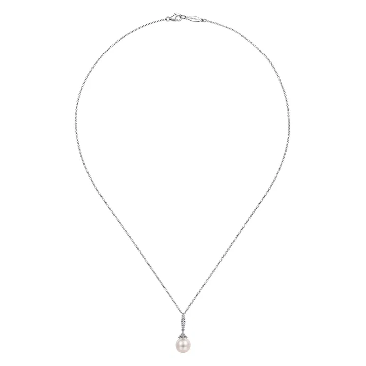Elevate your elegance with this 14K white gold cultured pearl and diamond drop pendant necklace. Featuring a lustrous cultured pearl suspended gracefully from a 16-inch white gold chain, this pendant exudes timeless sophistication.