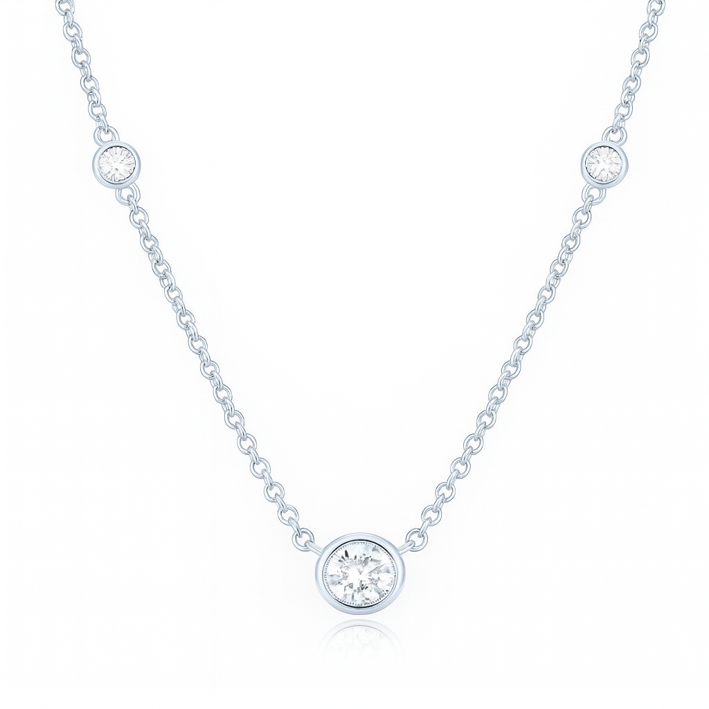 14K White Gold .46ctw Diamond Bezel Set Station Necklace