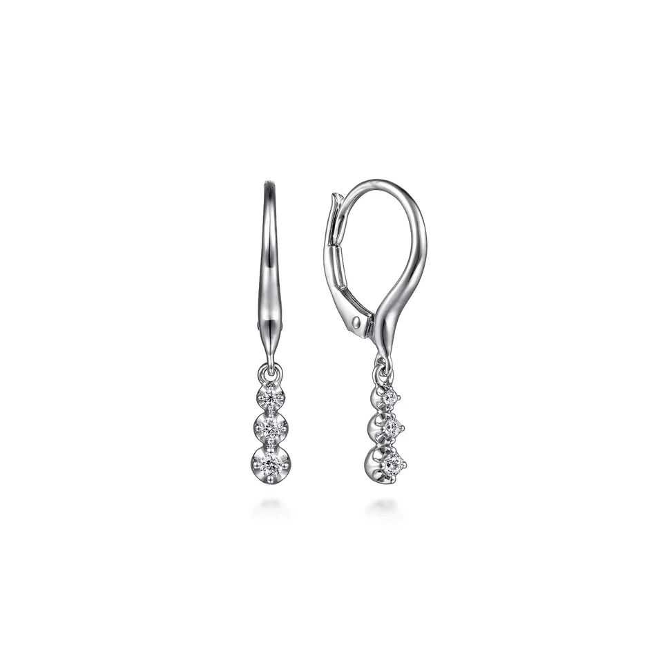Elevate your elegance with these 14K white gold diamond small drop earrings. Each earring features three vertically set diamonds totaling 0.12 carats, creating a delicate cascading effect that catches the light beautifully. The sleek drop design adds subtle movement and sophistication, making these earrings perfect for everyday wear or special occasions.