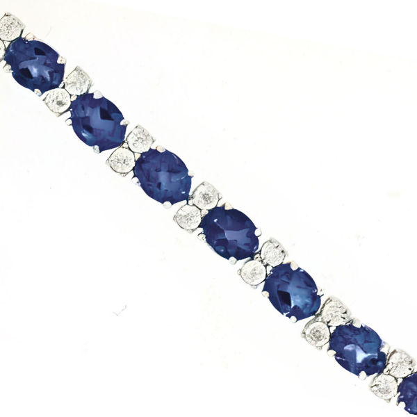 Introducing our exquisite Oval Sapphire and Diamond Bracelet, a luxurious statement piece crafted in 14K white gold. This stunning bracelet features 25 vibrant oval sapphires, showcasing a total carat weight of 11.0ctw, elegantly linked together. Each sapphire is beautifully separated by sparkling round diamonds, totaling 0.38 carats, which add a touch of brilliance and sophistication. Perfect for any occasion, this bracelet combines classic elegance with a modern flair, making it an essential addition to your jewelry collection. Adorn your wrist with this timeless treasure and let your style shine!