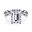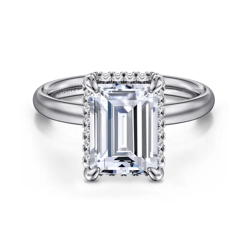 14K White Gold Emerald Cut Hidden Halo Diamond Engagement Ring