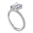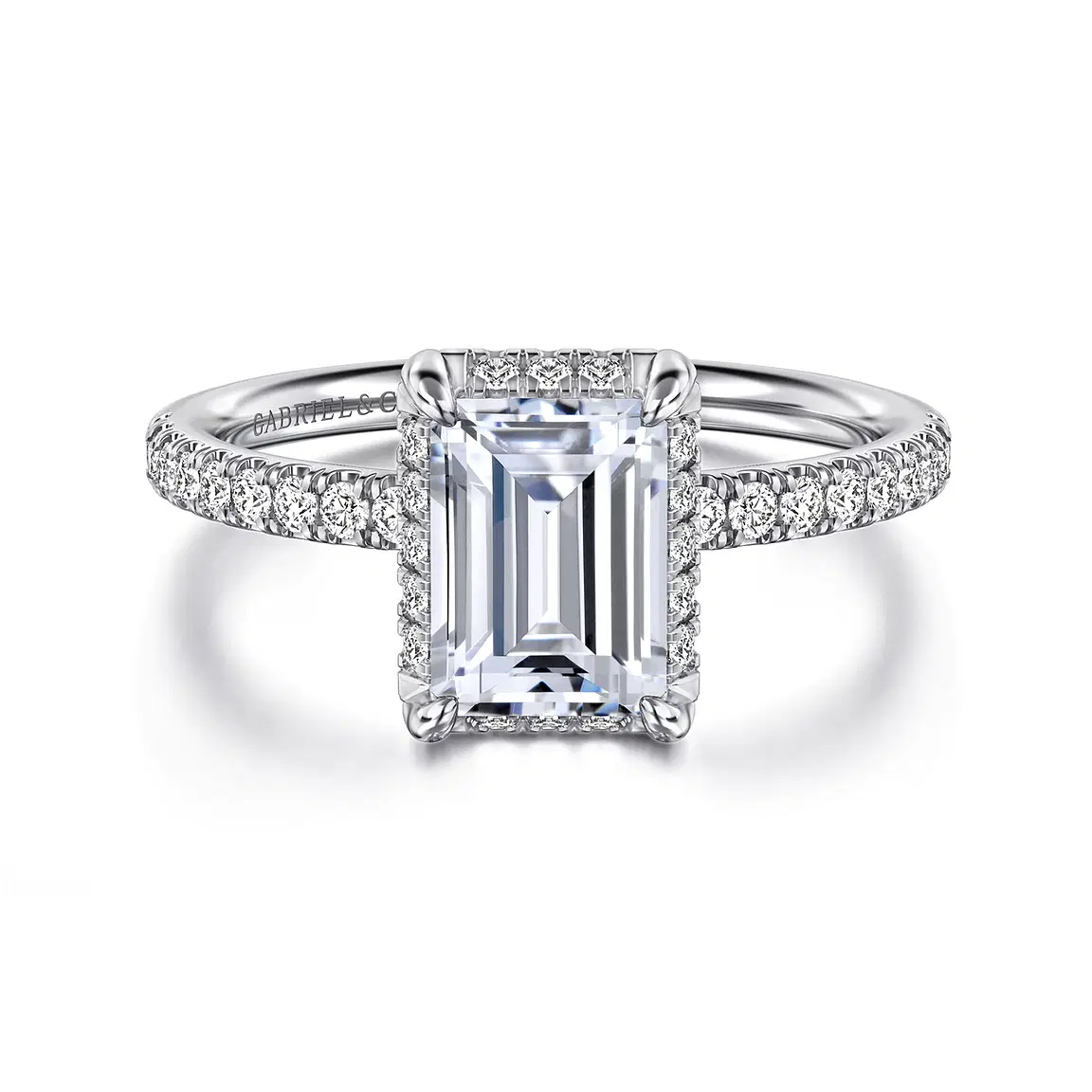 14K White Gold Emerald Cut Hidden Halo Diamond Engagement Ring