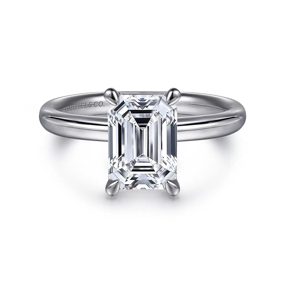 14K White Gold Emerald Cut Solitaire Diamond Engagement Ring