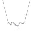 14K White Gold Graduating Diamond Wave Bar Necklace